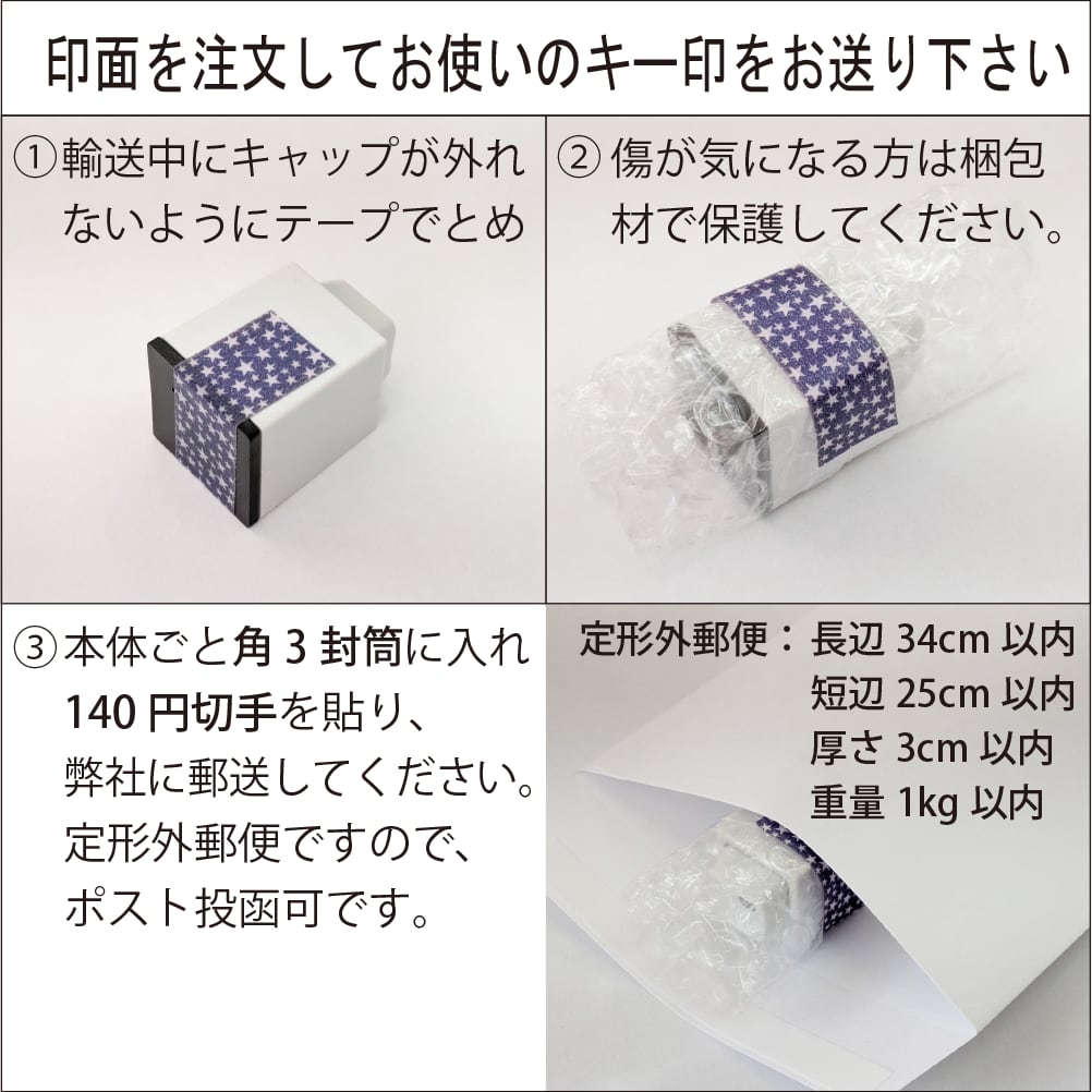 今お使いのキー印本体ごとお送り頂き(定形外郵便140円)付け替えて送り返します。