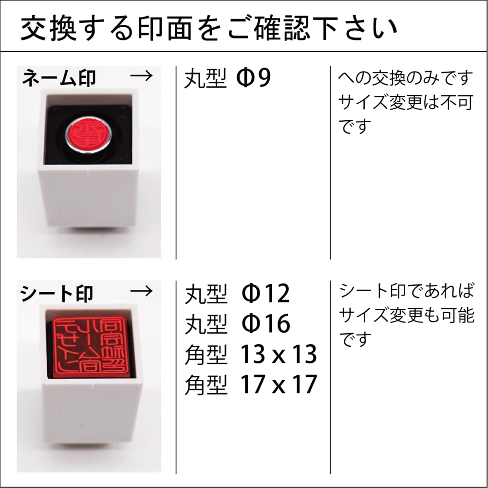 書体や名前を変えて使いたい場合など、印面を交換いたします。